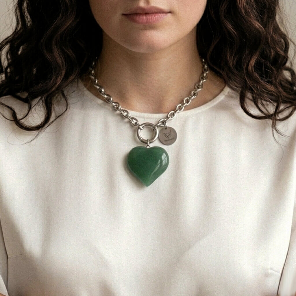 €45.00Į krepšelįKaklo papuošalas su įspūdinga nefrito širdele.