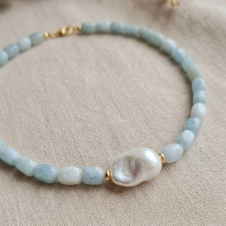 Natūralus akvamarinas, pasižymintis švelnia melsva spalva, nuo seno siejamas su skaidrumu, harmonija ir emociniu balansu.