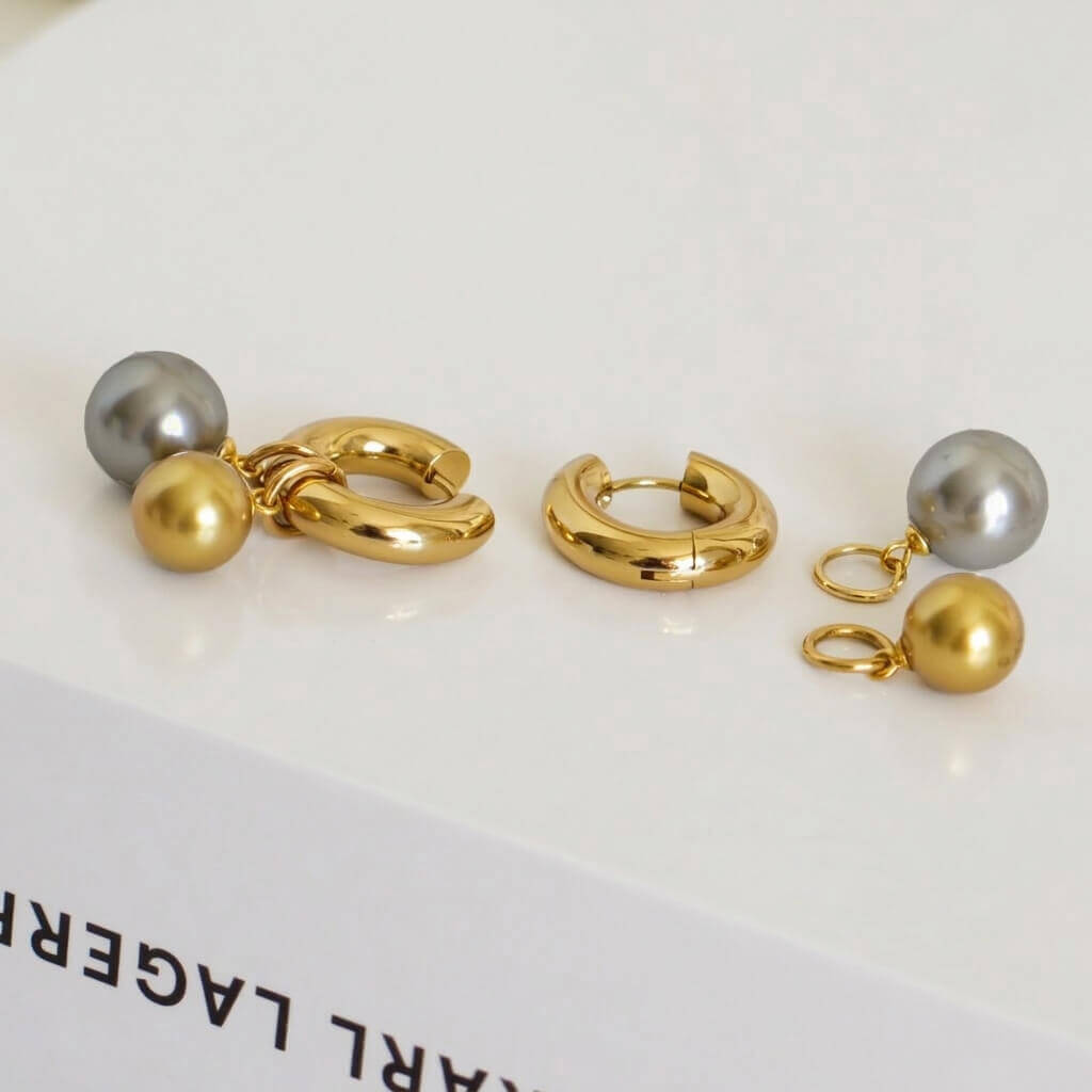 Nuimami perlai leidžia kurti skirtingas nuotaikas – rinktis abu, vieną mėgstamos spalvos arba palikti tik minimalistinius ratukus.