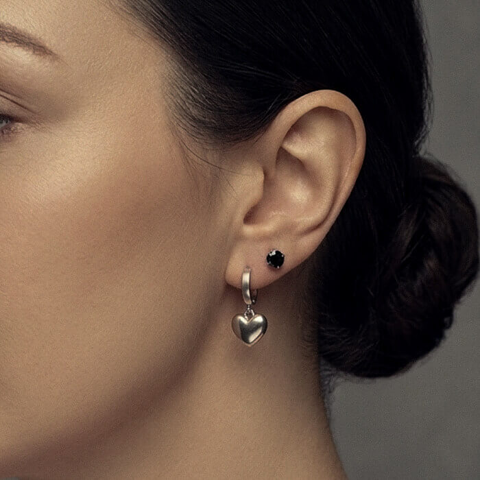 Mažyčiai auskarai su juodais kubiniais cirkoniais.