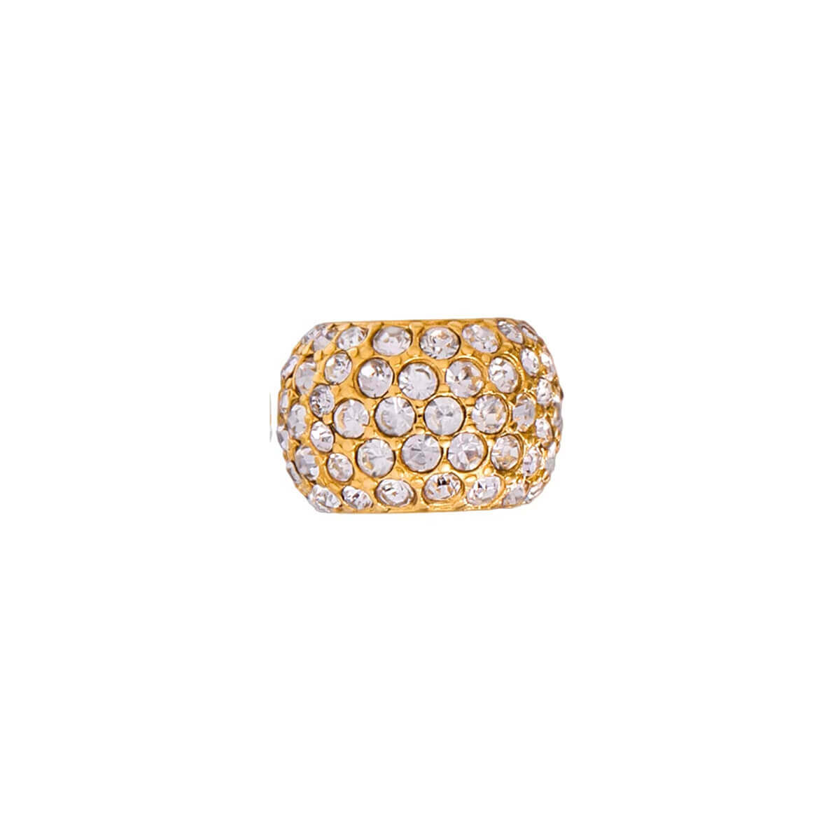 Vienas auskaras CUFF į ausies kremzlę. Iš auksuoto plieno. Auskarą puišia daugybė cirkonių.