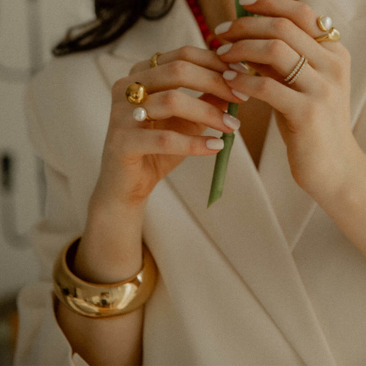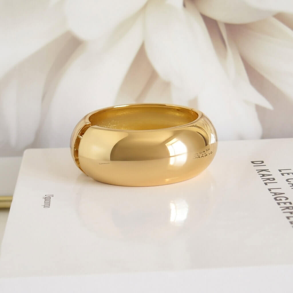 Plati, skulptūriška apyrankė, kuri akimirksniu tampa pagrindiniu įvaizdžio akcentu. Glotnus, veidrodinis paviršius subtiliai atspindi šviesą, kurdamas prabangos ir švarios estetikos įspūdį.
