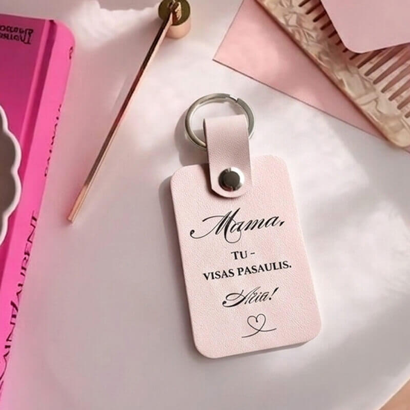 Natūralios odos raktų pakabukas Mamai su užrašu