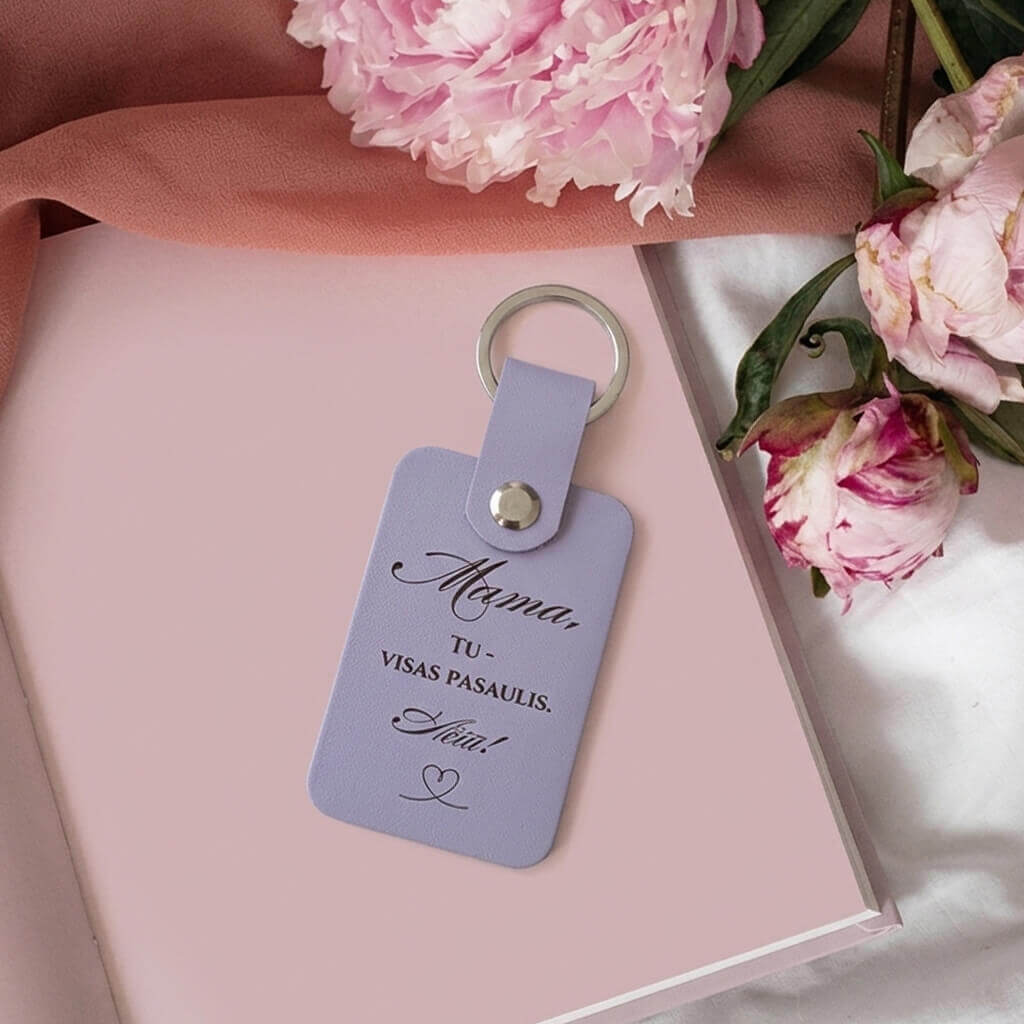 Natūralios odos raktų pakabukas Mamai su užrašu
