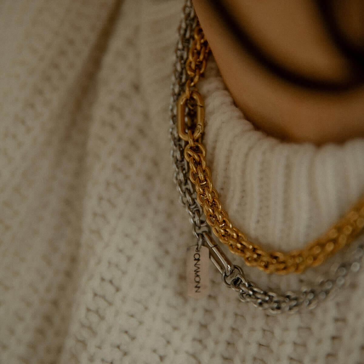 Stambesnio pynimo grandinėlė gražiai priglunda prie kaklo, o modernus karabino tipo užsegimas tampa ne tik funkcine, bet ir dizaino detale. Minimalistinis CINAMONN pakabukas suteikia papuošalui identitetą.