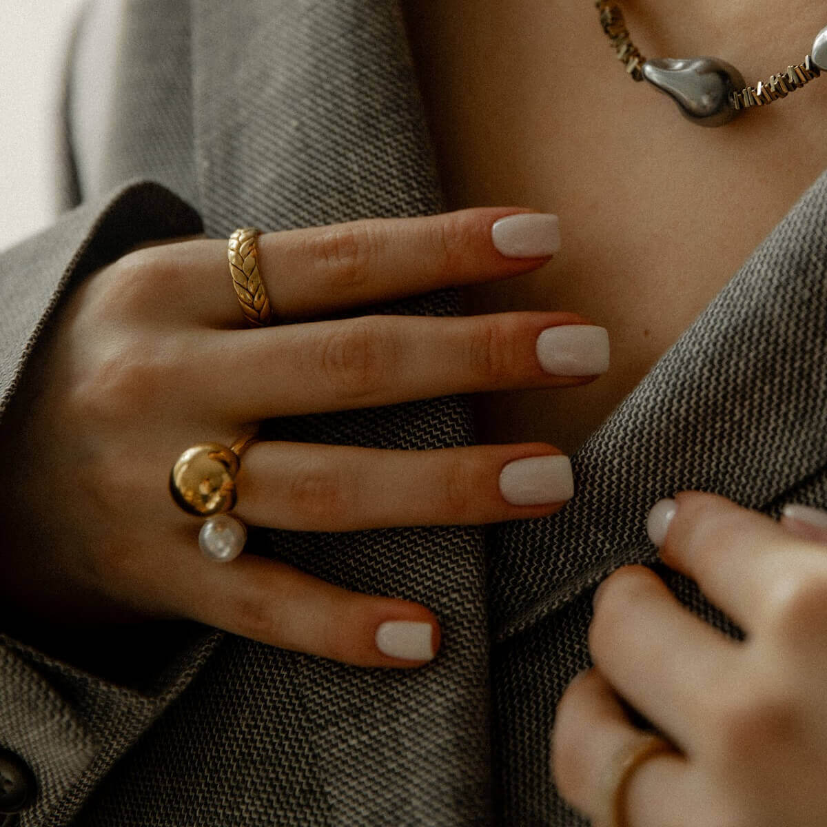 Švelnus spindesys, kuris sugrįžta kartu su pavasariu. Lyg šviesa, kuri tyliai nusėda ant perlų paviršiaus ir žaidžia aukso atspindžiuose. LUMI - tai lengvas, švarus spindėjimas: perlai, rožinis kvarcas, akvamarinas ir auksas. Kontrastui - gilus juodasis oniksas ir sidabro žvilgesys. Pusiausvyra, kuri dar labiau išryškina kiekvieną šviesos atspindį. Čia susilieja šviesa, elegancija ir subtilus švelnumas.